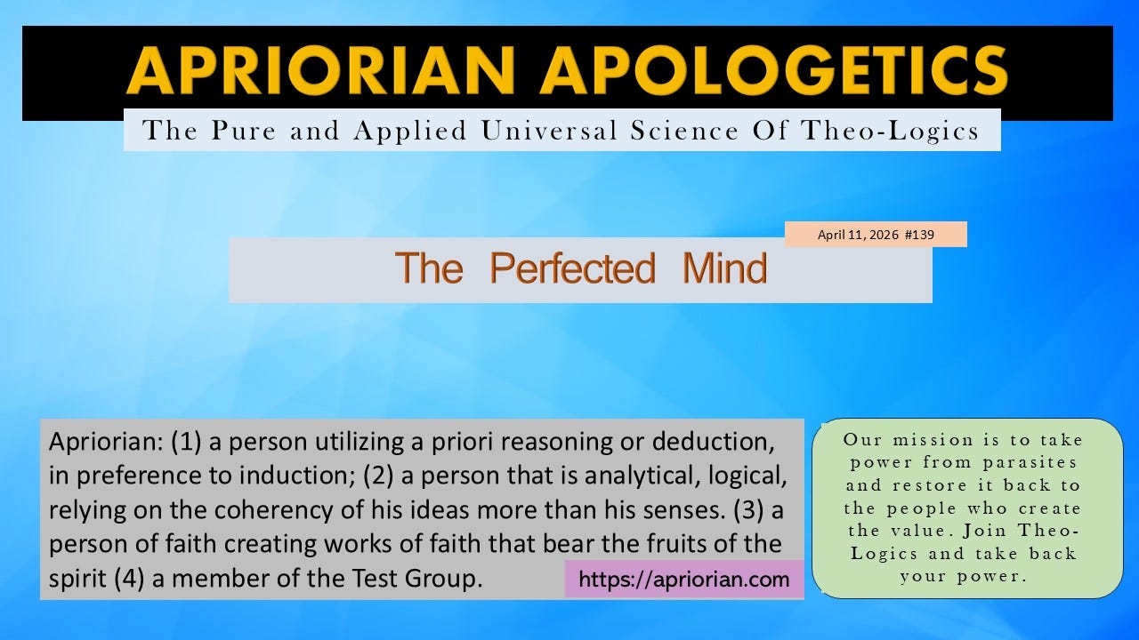 The perfected mind is a holy mind. A holy mind is given over to the building up of the church in a process called sanctification